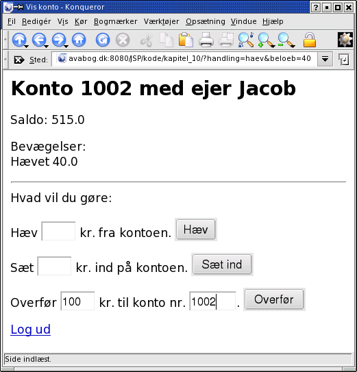 eksemplet fra: http://javabog.dk:8080/JSP/bank/