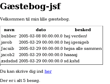 Herunder ses hvordan man kunne lave gæstebogen vi så i databasekapitlet i afsnit xxx med JSF.