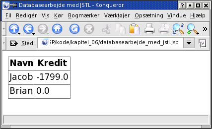 Læg mærke til, at vi her bruger af <c:out /> for at skrive ud: