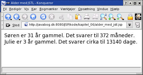 Her er eksemplet Alder fra afsnit 2.2 skrevet i JSTL-syntaks: