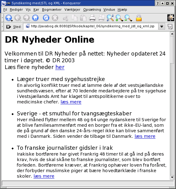 6.4.1 Syndikering med XML-funktionerne i JSTL 125