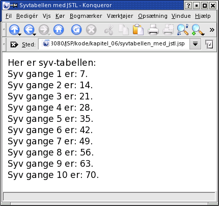 Her er eksemplet Syvtabellen fra afsnit 2.2.1 skrevet i JSTL-syntaks: