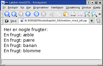 <c:forEach var="f" items="æble,pære,banan,blomme">