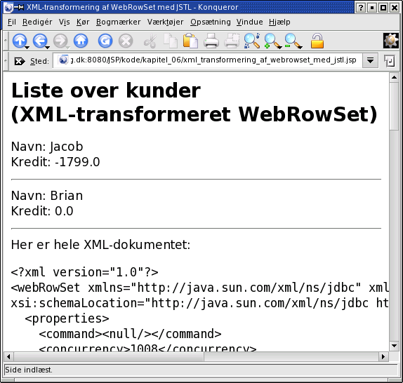 6.4.3 WebRowSet og XML-transformering med JSTL 127