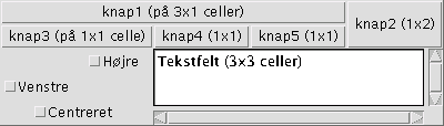}En anden måde at lave layout er med GridBagLayout, som lægger komponenterne efter et usynligt gitter. Hver komponent kan fylde en eller flere celler i højden eller bredden.