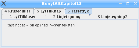 Vores sidste eksempel er med KeyListener-interfacet, der tillader at lytte efter tastetryk.