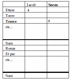 Blokken har nogle spillere (en for hver søjle). Spillerne ved, de hører til en blok, hvor deres resultater skal skrives ind på.
