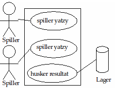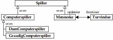 Visse steder er der mange slags objekter, der kan indgå i samme rolle. Det gælder for eksempel Spiller i diagrammet ovenfor. Så kan man tegne et separat diagram, der viser rollerne.