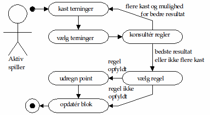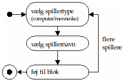 Aktivitetsdiagrammer beskriver den rækkefølge, som adfærdsmønstre og aktiviteter foregår i. Eksempel: Aktiviteten "definere deltagere i spillet":