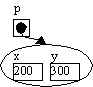 Point p;Ligesom med de simple typer skriver man typen (Point) efterfulgt af variabelnavnet. Nu har vi defineret, at p er en variabel til objekter af typen Point, og vi kan lave et nyt Point-objekt, som vi sætter p til at pege på1: