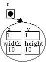 Et rektangel-objekt består af en x- og y-koordinat og en højde og bredde. Disse objektvariabler (data) hedder x, y, width og height.