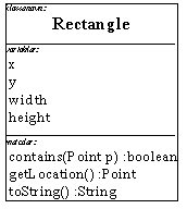 Vi vil nu gå videre til nogle lidt mere indviklede objekter, af klassen Rectangle. Den bruges sjældent i praksis (så du behøver ikke lære dens metoder udenad), men den er velegnet til at illustrere ideer omkring oprettelse af objekter (konstruktører) og metodekald med returværdi.