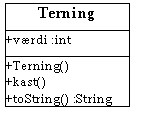 Definition af klasserne Boks, Terning, Raflebæger, Person og Konto