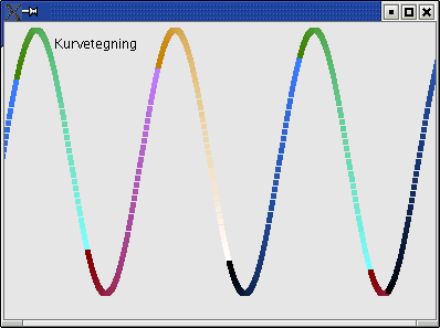 Farverne huskes i en liste, der er defineret som objektvariabel (sådan at den er kendt, så længe Kurvetegning-objektet findes). På den måde får vi data fra konstruktør til paint().