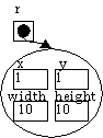 Et rektangel-objekt består af en x- og y-koordinat og en højde og bredde. Disse objektvariabler (data) hedder x, y, width og height.