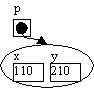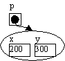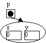 Nu har vi defineret, at p er en variabel til objekter af typen Point og vi kan lave et nyt Point-objekt, som vi sætter p til at pege på1: