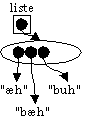 returnerer listens indhold som en streng. Dette sker ved at