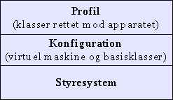 Oven på styresystemet haves en virtuel maskine af valgfri størrelse og en konfiguration med et udvalg af klasser fra standardbiblioteket. Oven på dette haves en profil, der afhænger af, hvilken type apparat man har med at gøre.
