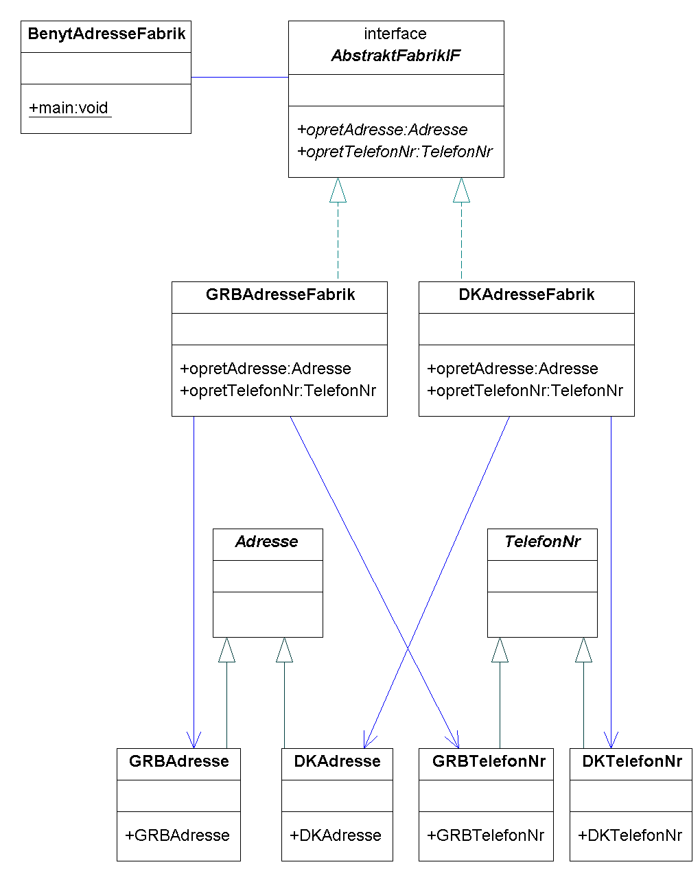 Hjælp h = Hjælp.opretHjælp(); // fabrikeringsmetode leverer objekt til klienten ... h.metode1(); h.metode2();