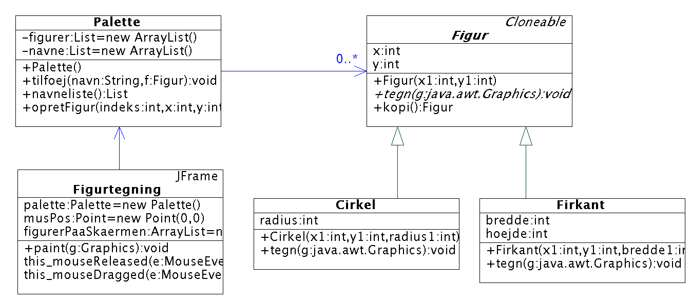 1En mulighed er dog at bruge serialisering - serialisere objektet til en datastrøm (en fil eller et array af byte) og deserialisere det igen. Dette er dog ikke nogen særlig effektiv måde at lave kopier af objekter, så den anbefales ikke, hvis programmet skal køre hurtigt, eller der skal kopieres mange objekter.
