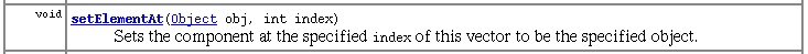 Resten af javadoc-kommentaren (efter punktummet) er altså udeladt i oversigten (sammenlign med kommentaren til setElementAt() ovenfor).